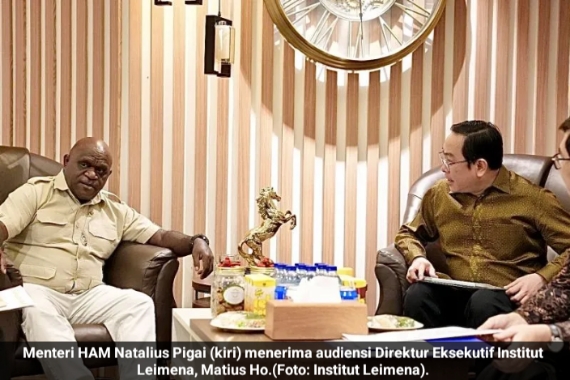 Adapun, Pigai menerima audiensi Direktur Eksekutif Institut Leimena, Matius Ho, di Kantor Kemenham, Jakarta, Selasa. Dalam audiensi tersebut, keduanya membahas urgensi pengarusutamaan HAM, salah satunya melalui program Literasi Keagamaan Lintas Budaya (LKLB).