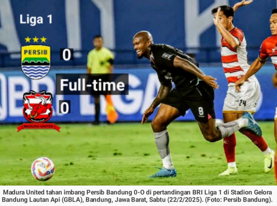 tokcer.news/, BANDUNG – Madura United menahan imbang tim tuan rumah Persib Bandung dengan skor 0-0 dalam lanjutan pertandingan Liga 1 Indonesia pekan ke-24 di Stadion Gelora Bandung Lautan Api (GBLA), Kota Bandung pada Sabtu malam. (22/2/2025).