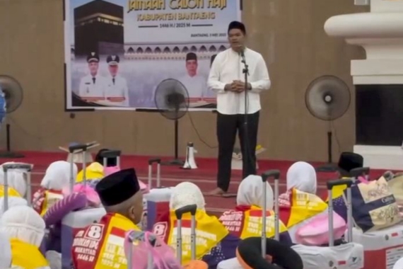 tokcer.news/, BANTAENG – Bupati Bantaeng, Uji Nurdin, melepas 178 Jamaah Calon Haji (JCH) yang tergabung dalam Kloter 8 Embarkasi Makassar di Masjid Agung Syekh Abdul Gani, Senin 5 Mei 2025.