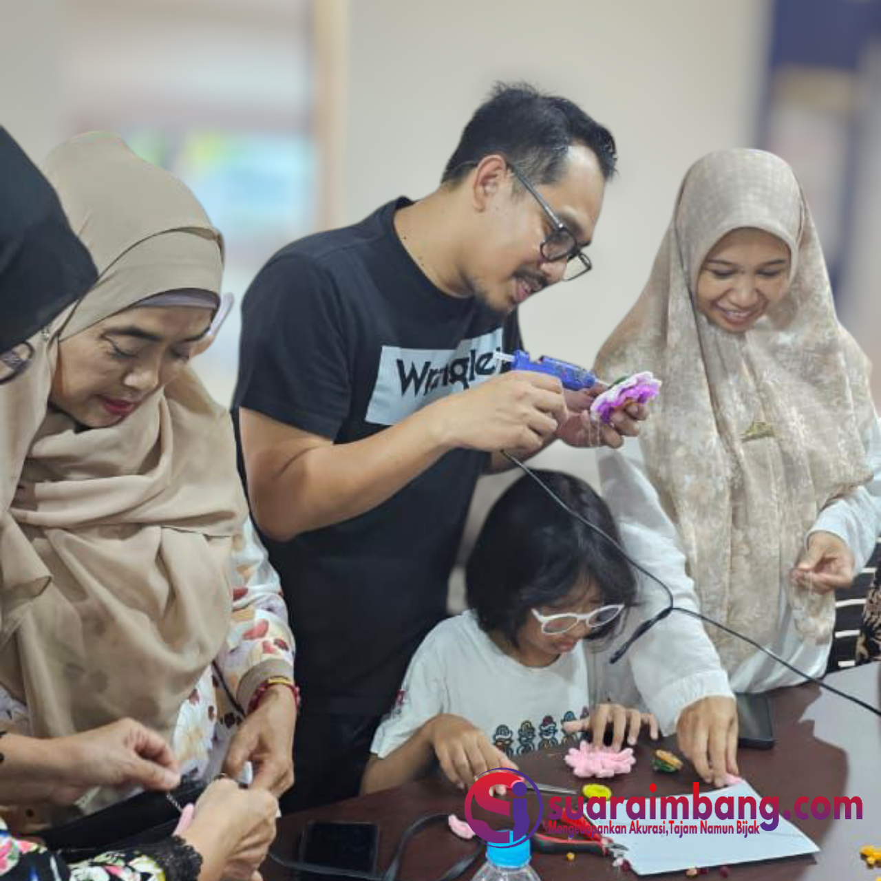 Dalam suasana hangat dan penuh semangat, para peserta yang mayoritas merupakan perempuan dewasa hingga lansia tampak antusias mengikuti setiap proses pembuatan kerajinan.