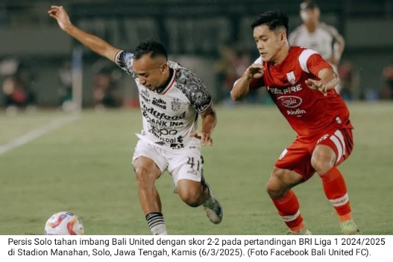tokcer.news/, SOLO – Persis Solo menahan imbang Bali United FC dengan skor 2-2 pada laga lanjutan BRI Liga 1 di Stadion Manahan Surakarta, Jawa Tengah, Kamis (6/3/2025).