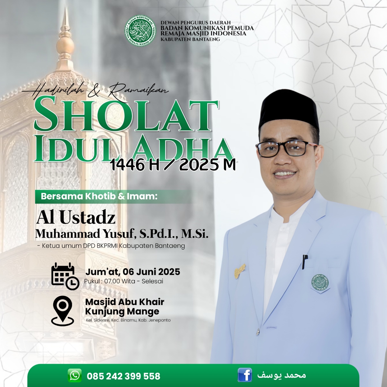 “Khutbah Ustadz Muh. Yusuf sangat menginspirasi dan membuat jamaah lebih memahami makna Idul Adha,” kata Ketua Panitia Masjid. (MD).